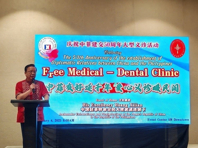 黄溪连在活动启动仪式上致辞,向卡加延德奥罗市华侨华人和各界人士送上新春祝福,赞赏华侨华人心系当地民众,广行善举,以民间交流助力中菲友好。